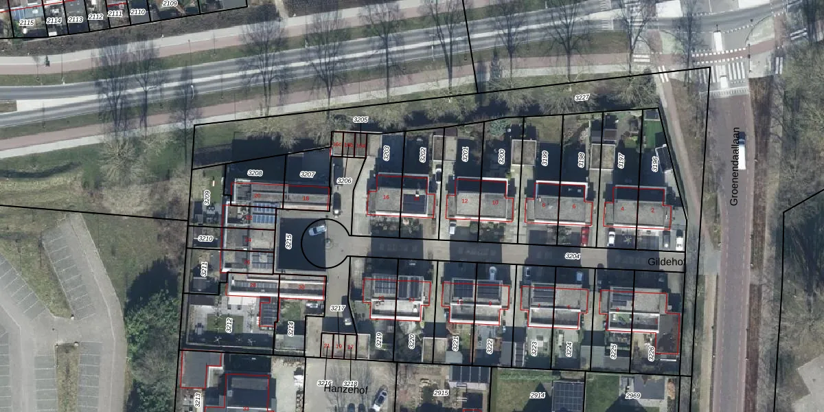 Het perceel waarop Gildehof 14 staat heeft een oppervlakte van 255 m². Dit is een middelgroot perceel. De perceeloppervlakte wordt geregistreerd door het Kadaster. Gedetailleerde informatie over de maten van dit perceel kunt u vinden in het rapport Kadastrale kaart met maatvoering van Gildehof 14.