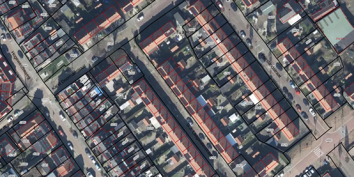 Het perceel waarop G.J. Laagwaterstraat 16 staat heeft een oppervlakte van 3355 m². Dit is een zeer groot perceel. De perceeloppervlakte wordt geregistreerd door het Kadaster. Gedetailleerde informatie over de maten van dit perceel kunt u vinden in het rapport Kadastrale kaart met maatvoering van G.J. Laagwaterstraat 16.