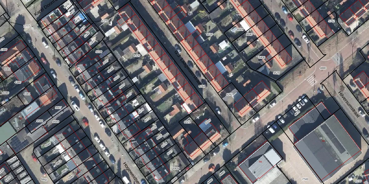 Het perceel waarop G.J. Laagwaterstraat 3 staat heeft een oppervlakte van 2195 m². Dit is een zeer groot perceel. De perceeloppervlakte wordt geregistreerd door het Kadaster. Gedetailleerde informatie over de maten van dit perceel kunt u vinden in het rapport Kadastrale kaart met maatvoering van G.J. Laagwaterstraat 3.