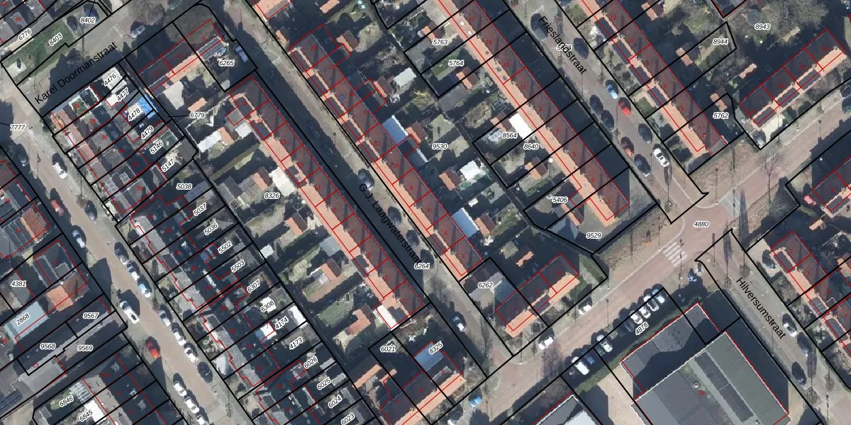 Het perceel waarop G.J. Laagwaterstraat 6 staat heeft een oppervlakte van 3355 m². Dit is een zeer groot perceel. De perceeloppervlakte wordt geregistreerd door het Kadaster. Gedetailleerde informatie over de maten van dit perceel kunt u vinden in het rapport Kadastrale kaart met maatvoering van G.J. Laagwaterstraat 6.