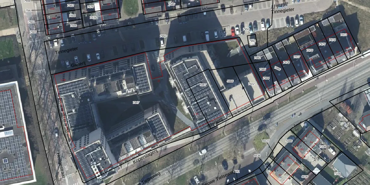 Het adres ligt op het perceel TIE00-D-7947, dat zich in de kadastrale gemeente Tiel bevindt. De oppervlakte van het perceel is 4487 m². Dat is groter dan gemiddeld in Tiel, waar de gemiddelde perceeloppervlakte op 1546,95 m² ligt. Het kleinste perceel in de kadastrale gemeente is 0 m² groot. De grootste perceeloppervlakte is 26,3 ha. Er zijn 88 adressen aanwezig op het perceel. In de Basisregistratie Kadaster (BRK) werden de grenzen van het perceel geregistreerd op 06-05-2024.