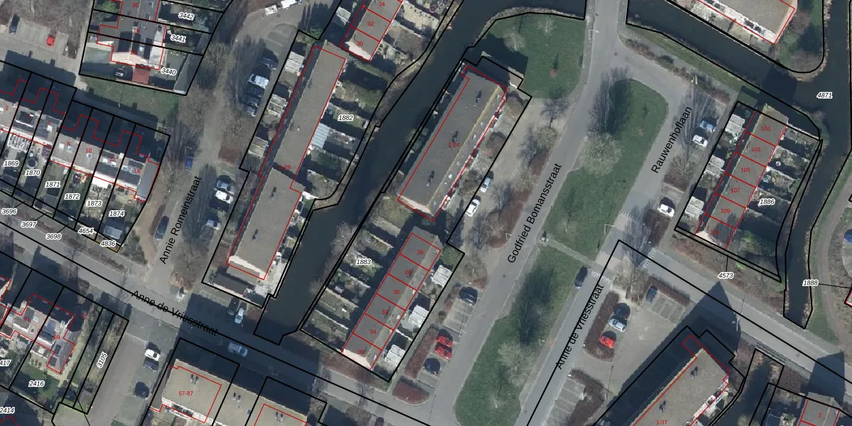 Het perceel waarop Godfried Bomansstraat 24 staat heeft een oppervlakte van 1610 m². Dit is een zeer groot perceel. De perceeloppervlakte wordt geregistreerd door het Kadaster. Gedetailleerde informatie over de maten van dit perceel kunt u vinden in het rapport Kadastrale kaart met maatvoering van Godfried Bomansstraat 24.