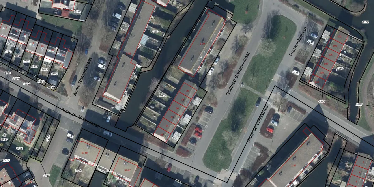 Het perceel waarop Godfried Bomansstraat 26 staat heeft een oppervlakte van 1610 m². Dit is een zeer groot perceel. De perceeloppervlakte wordt geregistreerd door het Kadaster. Gedetailleerde informatie over de maten van dit perceel kunt u vinden in het rapport Kadastrale kaart met maatvoering van Godfried Bomansstraat 26.
