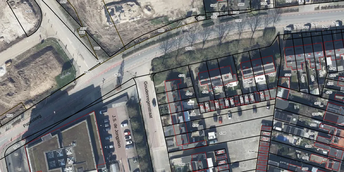 Goudenregenstraat 1 is gelegen op kadastraal perceel TIE00D4763. Deze kadastrale aanduiding is uniek en wordt gebruikt door het Kadaster om eigendomsrechten en andere zakelijke rechten vast te leggen. Het perceel maakt onderdeel uit van de kadastrale gemeente Tiel.