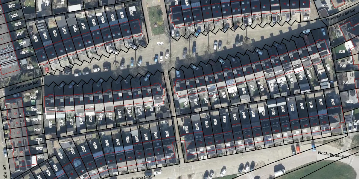 Het perceel waarop Gouvernestraat 26 staat heeft een oppervlakte van 216 m². Dit is een middelgroot perceel. De perceeloppervlakte wordt geregistreerd door het Kadaster. Gedetailleerde informatie over de maten van dit perceel kunt u vinden in het rapport Kadastrale kaart met maatvoering van Gouvernestraat 26.
