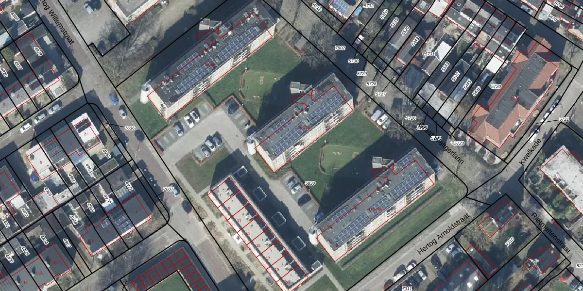 Het adres ligt op het perceel TIE00-D-5830, dat zich in de kadastrale gemeente Tiel bevindt. Het perceel is met 7307 m² relatief groot. Het gemiddelde ligt in de kadastrale gemeente Tiel op 1546,7 m². Het grootste perceel in de kadastrale gemeente is 26,3 ha. Het kleinste perceel heeft een oppervlakte van 0 m². Er zijn 68 adressen aanwezig op het perceel. In de Basisregistratie Kadaster (BRK) werden de grenzen van het perceel geregistreerd op 25-02-2011.
