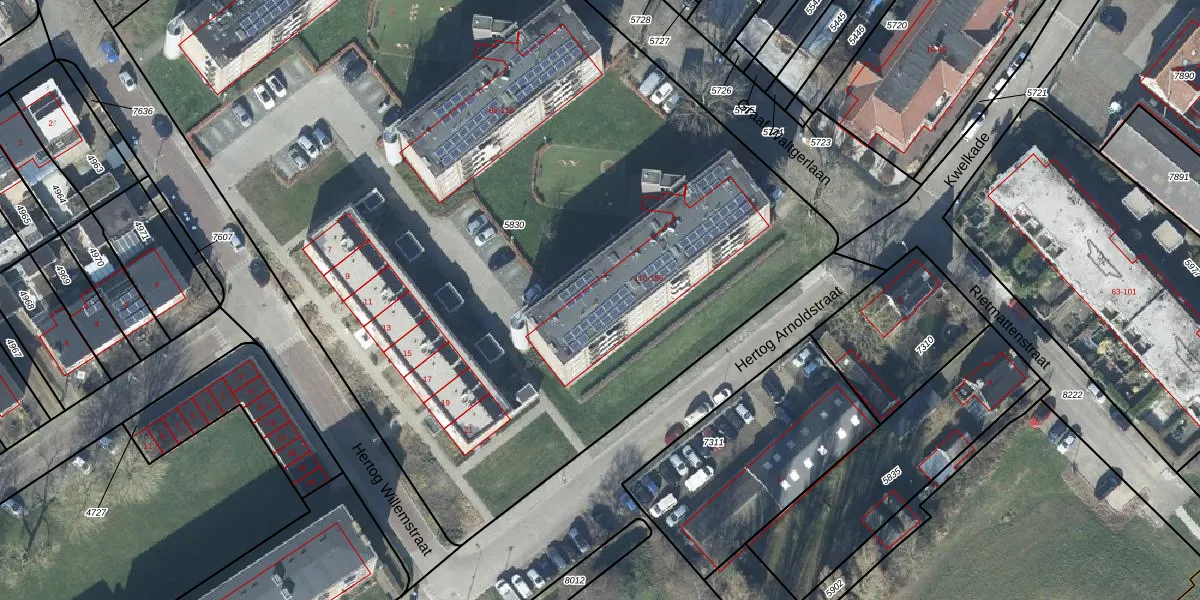 Het adres ligt op het perceel TIE00-D-5830, dat zich in de kadastrale gemeente Tiel bevindt. Het perceel is met 7307 m² relatief groot. Het gemiddelde ligt in de kadastrale gemeente Tiel op 1546,87 m². Het grootste perceel in de kadastrale gemeente is 26,3 ha. Het kleinste perceel heeft een oppervlakte van 0 m². Er zijn 68 adressen aanwezig op het perceel. De laatste wijziging in het de Basisregistratie Kadaster (BRK) was op 25-02-2011.