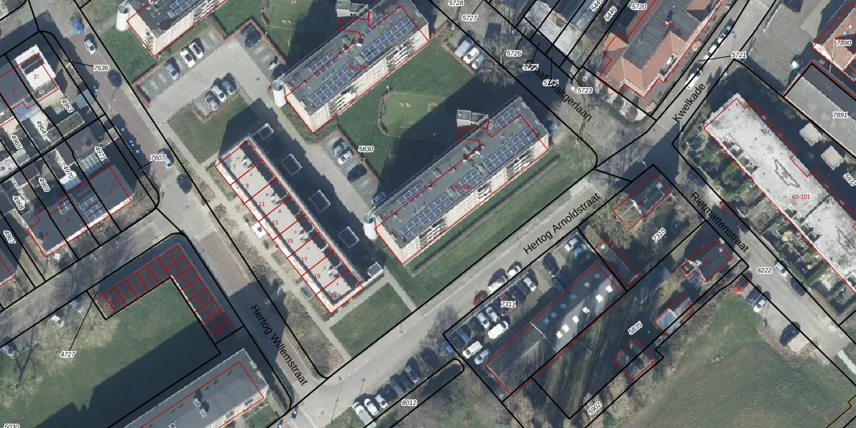Het adres ligt op het perceel TIE00-D-5830, dat zich in de kadastrale gemeente Tiel bevindt. Het perceel is met 7307 m² relatief groot. Het gemiddelde ligt in de kadastrale gemeente Tiel op 1546,87 m². Het grootste perceel in de kadastrale gemeente is 26,3 ha. Het kleinste perceel heeft een oppervlakte van 0 m². Er zijn 68 adressen aanwezig op het perceel. De huidige grenzen van het perceel zijn digitaal in de Basisregistratie Kadaster (BRK) geregistreerd op 25-02-2011.
