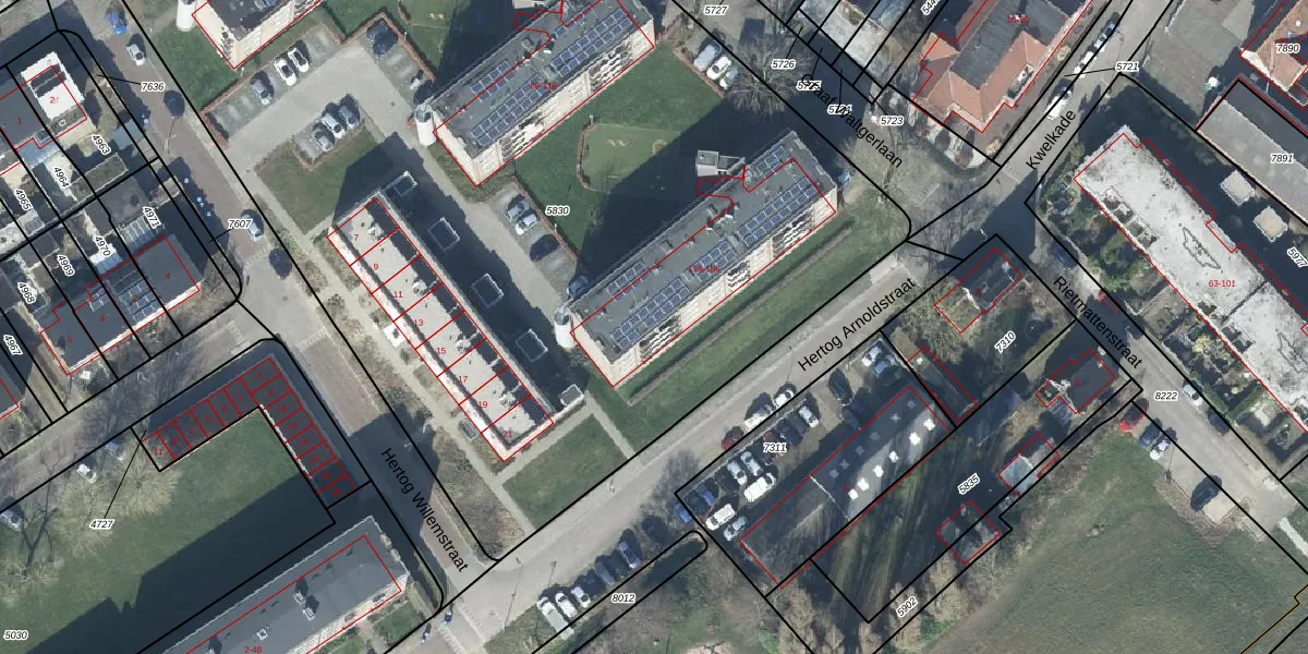 Het adres ligt op het perceel TIE00-D-5830, dat zich in de kadastrale gemeente Tiel bevindt. Het perceel is met 7307 m² relatief groot. Het gemiddelde ligt in de kadastrale gemeente Tiel op 1546,87 m². Het grootste perceel in de kadastrale gemeente is 26,3 ha. Het kleinste perceel heeft een oppervlakte van 0 m². Er zijn 68 adressen aanwezig op het perceel. In de Basisregistratie Kadaster (BRK) werden de grenzen van het perceel geregistreerd op 25-02-2011.