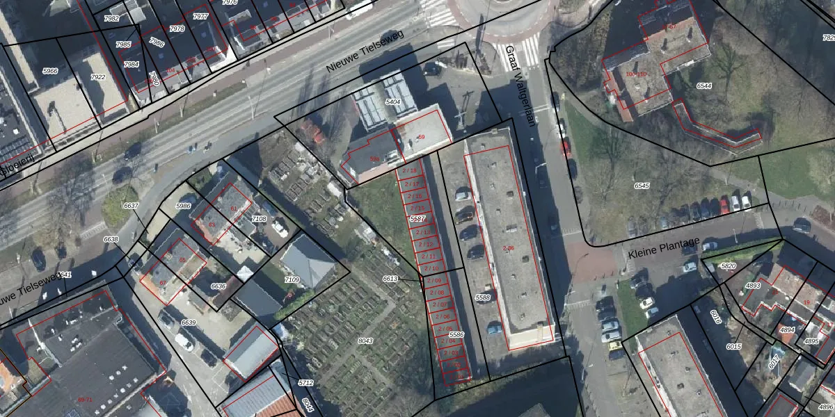 Graaf Waltgerlaan 2-15 is gelegen op kadastraal perceel TIE00D5587. Deze kadastrale aanduiding is uniek en wordt gebruikt door het Kadaster om eigendomsrechten en andere zakelijke rechten vast te leggen. Het perceel maakt onderdeel uit van de kadastrale gemeente Tiel.