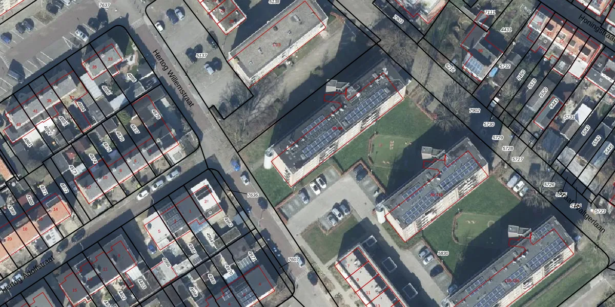 Het perceel waarop Graaf Waltgerlaan 58 staat heeft een oppervlakte van 7307 m². Dit is een zeer groot perceel. De perceeloppervlakte wordt geregistreerd door het Kadaster. Gedetailleerde informatie over de maten van dit perceel kunt u vinden in het rapport Kadastrale kaart met maatvoering van Graaf Waltgerlaan 58.