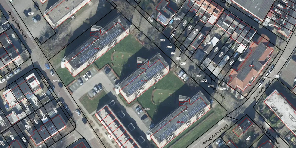 Het adres ligt op het perceel TIE00-D-5830, dat zich in de kadastrale gemeente Tiel bevindt. Het perceel is met 7307 m² relatief groot. Het gemiddelde ligt in de kadastrale gemeente Tiel op 1546,7 m². Het grootste perceel in de kadastrale gemeente is 26,3 ha. Het kleinste perceel heeft een oppervlakte van 0 m². Er zijn 68 adressen aanwezig op het perceel. In de Basisregistratie Kadaster (BRK) werden de grenzen van het perceel geregistreerd op 25-02-2011.