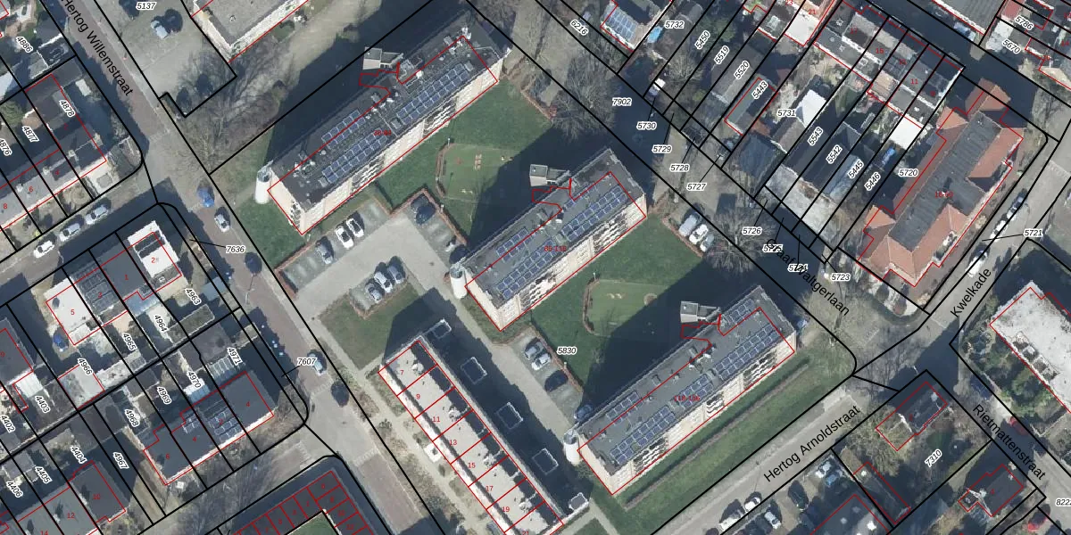 Het adres ligt op het perceel TIE00-D-5830, dat zich in de kadastrale gemeente Tiel bevindt. Het perceel is met 7307 m² relatief groot. Het gemiddelde ligt in de kadastrale gemeente Tiel op 1546,7 m². Het grootste perceel in de kadastrale gemeente is 26,3 ha. Het kleinste perceel heeft een oppervlakte van 0 m². Er zijn 68 adressen aanwezig op het perceel. De laatste wijziging in het de Basisregistratie Kadaster (BRK) was op 25-02-2011.