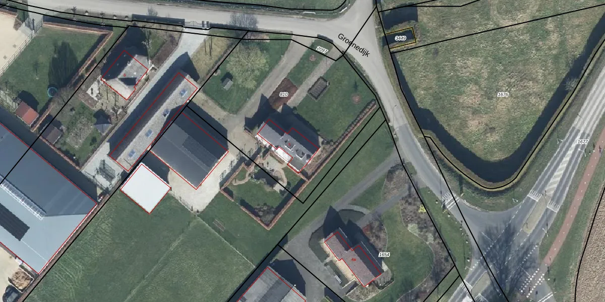 Het perceel waarop Groenedijk 5 staat heeft een oppervlakte van 1990 m². Dit is een zeer groot perceel. De perceeloppervlakte wordt geregistreerd door het Kadaster. Gedetailleerde informatie over de maten van dit perceel kunt u vinden in het rapport Kadastrale kaart met maatvoering van Groenedijk 5.