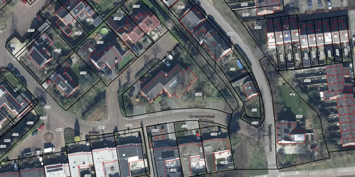 Het perceel waarop Groenendaal 2 staat heeft een oppervlakte van 1389 m². Dit is een zeer groot perceel. De perceeloppervlakte wordt geregistreerd door het Kadaster. Gedetailleerde informatie over de maten van dit perceel kunt u vinden in het rapport Kadastrale kaart met maatvoering van Groenendaal 2.