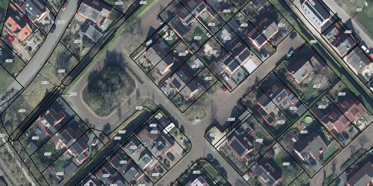 Het perceel waarop Groenendaal 30 staat heeft een oppervlakte van 255 m². Dit is een middelgroot perceel. De perceeloppervlakte wordt geregistreerd door het Kadaster. Gedetailleerde informatie over de maten van dit perceel kunt u vinden in het rapport Kadastrale kaart met maatvoering van Groenendaal 30.