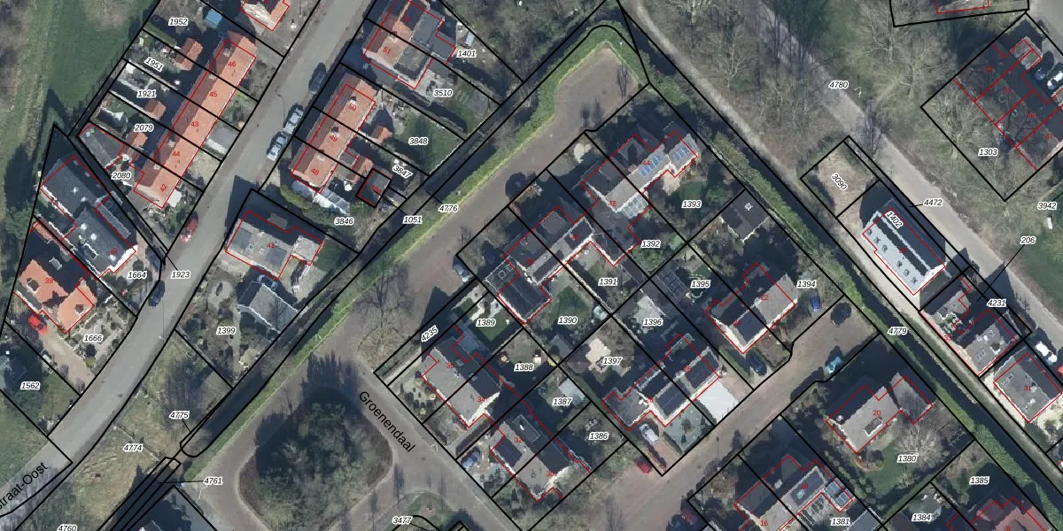 Het perceel waarop Groenendaal 38 staat heeft een oppervlakte van 387 m². Dit is een groot perceel. De perceeloppervlakte wordt geregistreerd door het Kadaster. Gedetailleerde informatie over de maten van dit perceel kunt u vinden in het rapport Kadastrale kaart met maatvoering van Groenendaal 38.
