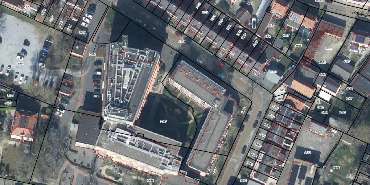 Het perceel waarop Groenlandsstraatje 27-28 staat heeft een oppervlakte van 1355 m². Dit is een zeer groot perceel. De perceeloppervlakte wordt geregistreerd door het Kadaster. Gedetailleerde informatie over de maten van dit perceel kunt u vinden in het rapport Kadastrale kaart met maatvoering van Groenlandsstraatje 27-28.