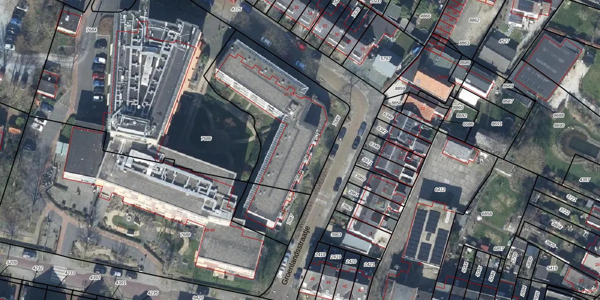 Het perceel waarop Groenlandsstraatje 27-05 staat heeft een oppervlakte van 1355 m². Dit is een zeer groot perceel. De perceeloppervlakte wordt geregistreerd door het Kadaster. Gedetailleerde informatie over de maten van dit perceel kunt u vinden in het rapport Kadastrale kaart met maatvoering van Groenlandsstraatje 27-05.