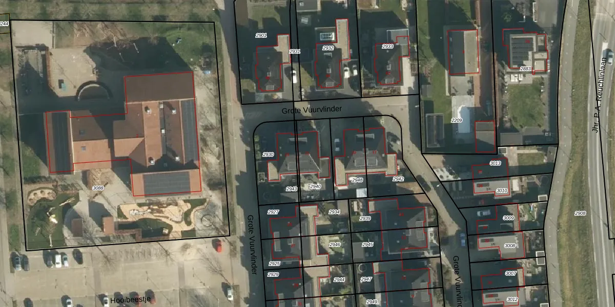 Het perceel waarop Grote Vuurvlinder 21 staat heeft een oppervlakte van 290 m². Dit is een middelgroot perceel. De perceeloppervlakte wordt geregistreerd door het Kadaster. Gedetailleerde informatie over de maten van dit perceel kunt u vinden in het rapport Kadastrale kaart met maatvoering van Grote Vuurvlinder 21.