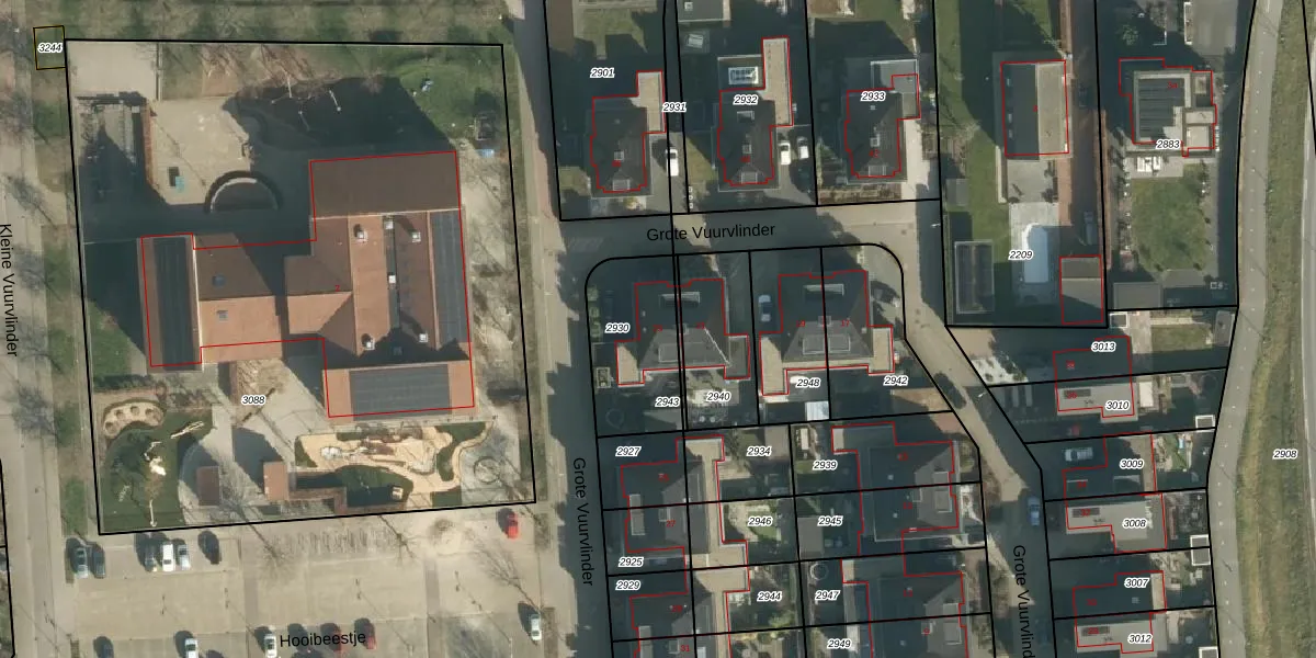 Grote Vuurvlinder 23 is gelegen op kadastraal perceel TIE00K2930. Deze kadastrale aanduiding is uniek en wordt gebruikt door het Kadaster om eigendomsrechten en andere zakelijke rechten vast te leggen. Het perceel maakt onderdeel uit van de kadastrale gemeente Tiel.