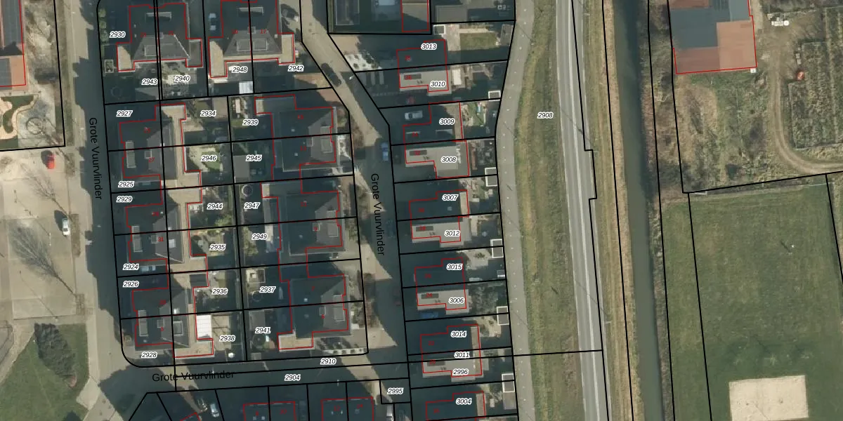 Grote Vuurvlinder 30 is gelegen op kadastraal perceel TIE00K3007. Deze kadastrale aanduiding is uniek en wordt gebruikt door het Kadaster om eigendomsrechten en andere zakelijke rechten vast te leggen. Het perceel maakt onderdeel uit van de kadastrale gemeente Tiel.
