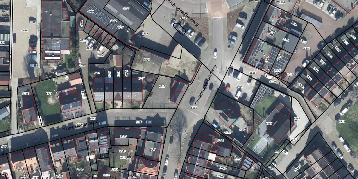 Grotebrugse Grintweg 107-13 is gelegen op kadastraal perceel TIE00C6916. Deze kadastrale aanduiding is uniek en wordt gebruikt door het Kadaster om eigendomsrechten en andere zakelijke rechten vast te leggen. Het perceel maakt onderdeel uit van de kadastrale gemeente Tiel.