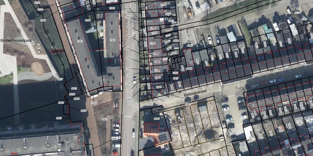 Het adres ligt op het perceel TIE00-C-7028, dat zich in de kadastrale gemeente Tiel bevindt. Het perceel is 45 m² groot. Dat is kleiner dan de gemiddelde perceeloppervlakte in Tiel, dat op 1546,7 m² ligt. De grootste perceeloppervlakte in de kadastrale gemeente is 26,3 ha. De kleinste oppervlakte bedraagt 0 m². Er zijn geen andere adressen aanwezig op het perceel. De huidige grenzen van het perceel zijn digitaal in de Basisregistratie Kadaster (BRK) geregistreerd op 19-08-2003.