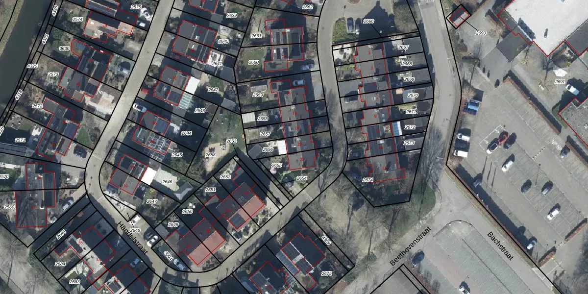 Händelstraat 20 is gelegen op kadastraal perceel TIE00H2656. Deze kadastrale aanduiding is uniek en wordt gebruikt door het Kadaster om eigendomsrechten en andere zakelijke rechten vast te leggen. Het perceel maakt onderdeel uit van de kadastrale gemeente Tiel.
