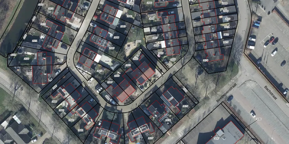 Händelstraat 24 is gelegen op kadastraal perceel TIE00H2652. Deze kadastrale aanduiding is uniek en wordt gebruikt door het Kadaster om eigendomsrechten en andere zakelijke rechten vast te leggen. Het perceel maakt onderdeel uit van de kadastrale gemeente Tiel.