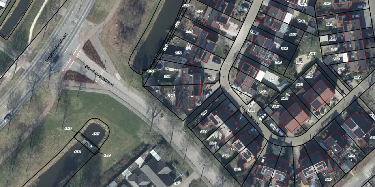 Händelstraat 37 is gelegen op kadastraal perceel TIE00H2569. Deze kadastrale aanduiding is uniek en wordt gebruikt door het Kadaster om eigendomsrechten en andere zakelijke rechten vast te leggen. Het perceel maakt onderdeel uit van de kadastrale gemeente Tiel.