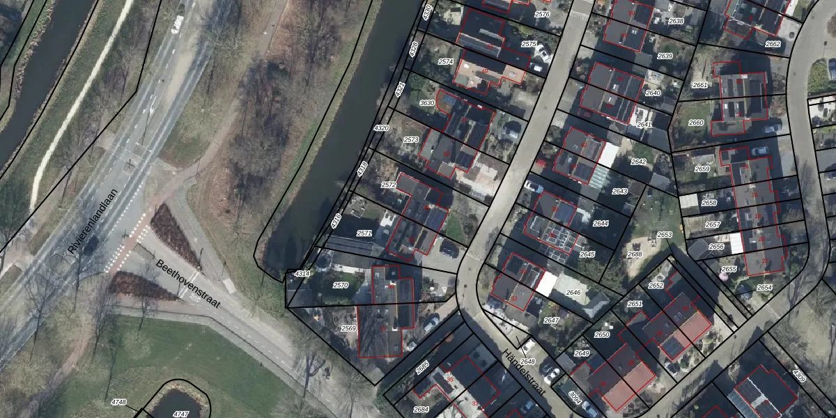 Händelstraat 43 is gelegen op kadastraal perceel TIE00H2572. Deze kadastrale aanduiding is uniek en wordt gebruikt door het Kadaster om eigendomsrechten en andere zakelijke rechten vast te leggen. Het perceel maakt onderdeel uit van de kadastrale gemeente Tiel.