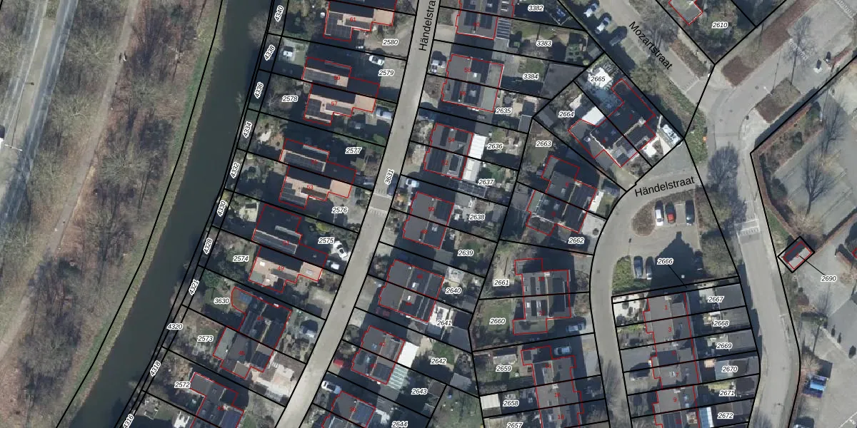 Händelstraat 50 is gelegen op kadastraal perceel TIE00H2638. Deze kadastrale aanduiding is uniek en wordt gebruikt door het Kadaster om eigendomsrechten en andere zakelijke rechten vast te leggen. Het perceel maakt onderdeel uit van de kadastrale gemeente Tiel.