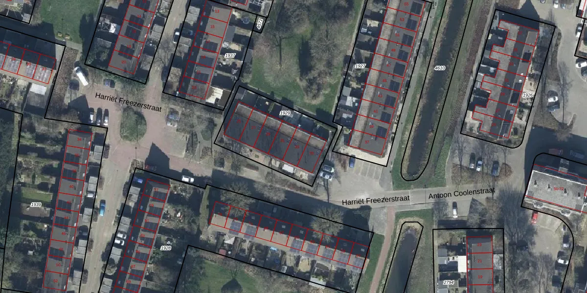 Harriët Freezerstraat 33 is gelegen op kadastraal perceel TIE00H1929. Deze kadastrale aanduiding is uniek en wordt gebruikt door het Kadaster om eigendomsrechten en andere zakelijke rechten vast te leggen. Het perceel maakt onderdeel uit van de kadastrale gemeente Tiel.