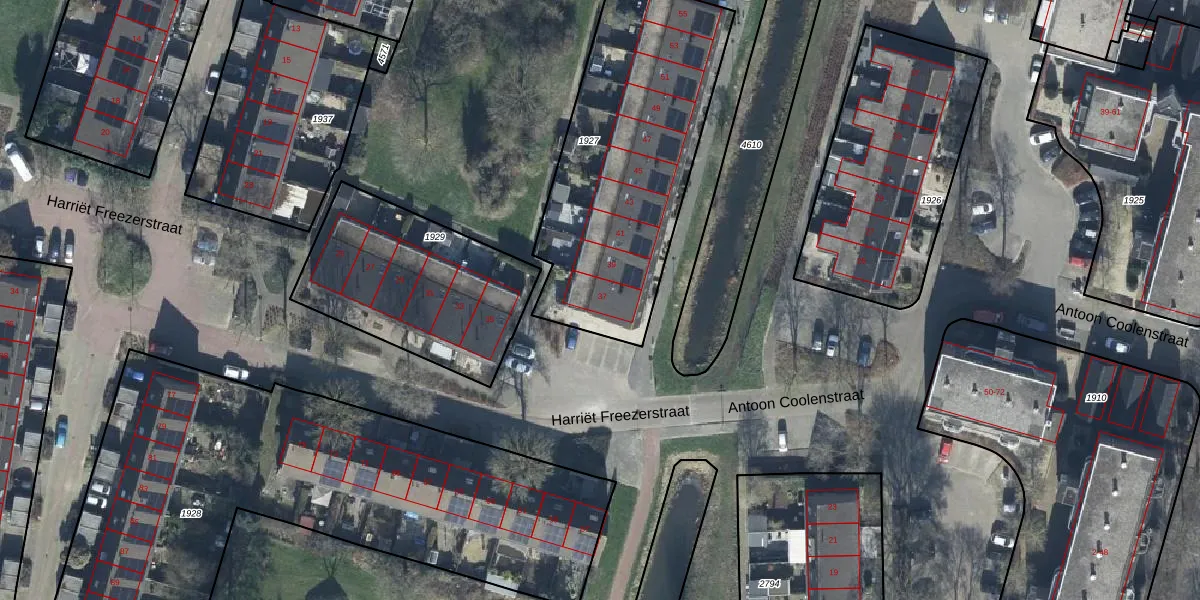 Het perceel waarop Harriët Freezerstraat 37 staat heeft een oppervlakte van 1218 m². Dit is een zeer groot perceel. De perceeloppervlakte wordt geregistreerd door het Kadaster. Gedetailleerde informatie over de maten van dit perceel kunt u vinden in het rapport Kadastrale kaart met maatvoering van Harriët Freezerstraat 37.