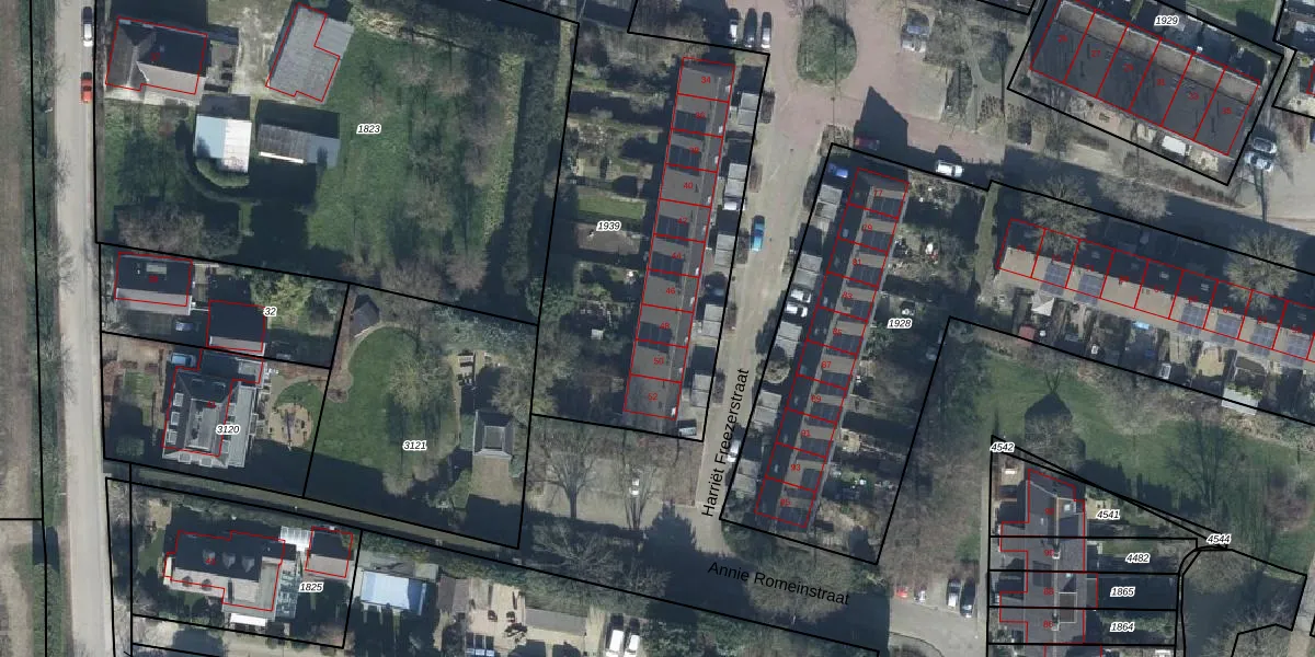 Het perceel waarop Harriët Freezerstraat 48 staat heeft een oppervlakte van 2710 m². Dit is een zeer groot perceel. De perceeloppervlakte wordt geregistreerd door het Kadaster. Gedetailleerde informatie over de maten van dit perceel kunt u vinden in het rapport Kadastrale kaart met maatvoering van Harriët Freezerstraat 48.