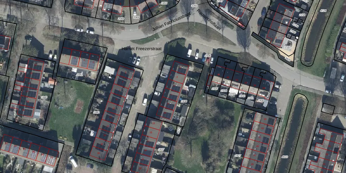 Harriët Freezerstraat 5 is gelegen op kadastraal perceel TIE00H1938. Deze kadastrale aanduiding is uniek en wordt gebruikt door het Kadaster om eigendomsrechten en andere zakelijke rechten vast te leggen. Het perceel maakt onderdeel uit van de kadastrale gemeente Tiel.