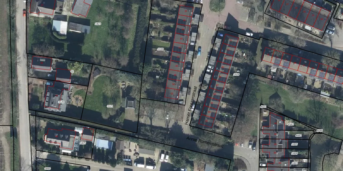 Het perceel waarop Harriët Freezerstraat 50 staat heeft een oppervlakte van 2710 m². Dit is een zeer groot perceel. De perceeloppervlakte wordt geregistreerd door het Kadaster. Gedetailleerde informatie over de maten van dit perceel kunt u vinden in het rapport Kadastrale kaart met maatvoering van Harriët Freezerstraat 50.