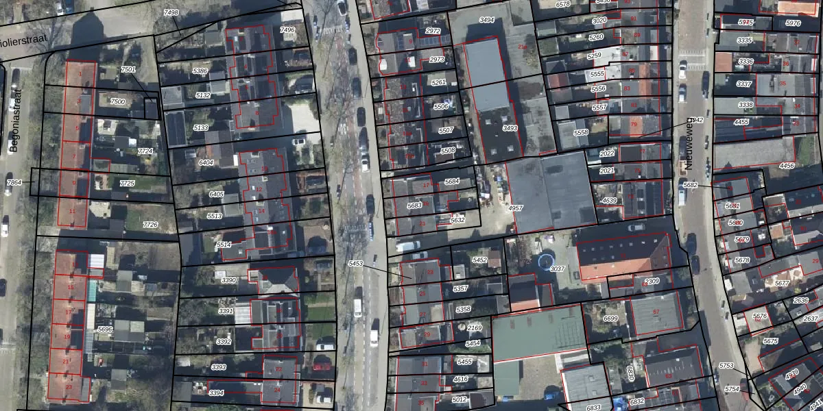 Gebruik de zoekbalk of klik op een perceel voor informatie over de adressen binnen dit perceel.