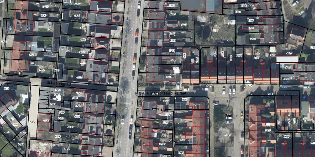 Gebruik de zoekbalk of klik op een perceel voor informatie over de adressen binnen dit perceel.