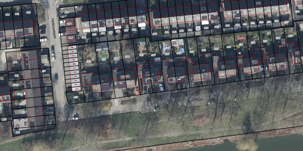 Hellouwlaan 34 is gelegen op kadastraal perceel TIE00M246. Deze kadastrale aanduiding is uniek en wordt gebruikt door het Kadaster om eigendomsrechten en andere zakelijke rechten vast te leggen. Het perceel maakt onderdeel uit van de kadastrale gemeente Tiel.