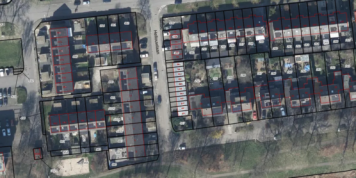 Gebruik de zoekbalk of klik op een perceel voor informatie over de adressen binnen dit perceel.
