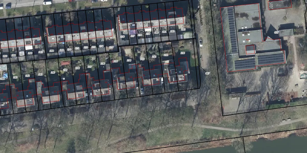 Het perceel waarop Hellouwlaan 6 staat heeft een oppervlakte van 278 m². Dit is een middelgroot perceel. De perceeloppervlakte wordt geregistreerd door het Kadaster. Gedetailleerde informatie over de maten van dit perceel kunt u vinden in het rapport Kadastrale kaart met maatvoering van Hellouwlaan 6.