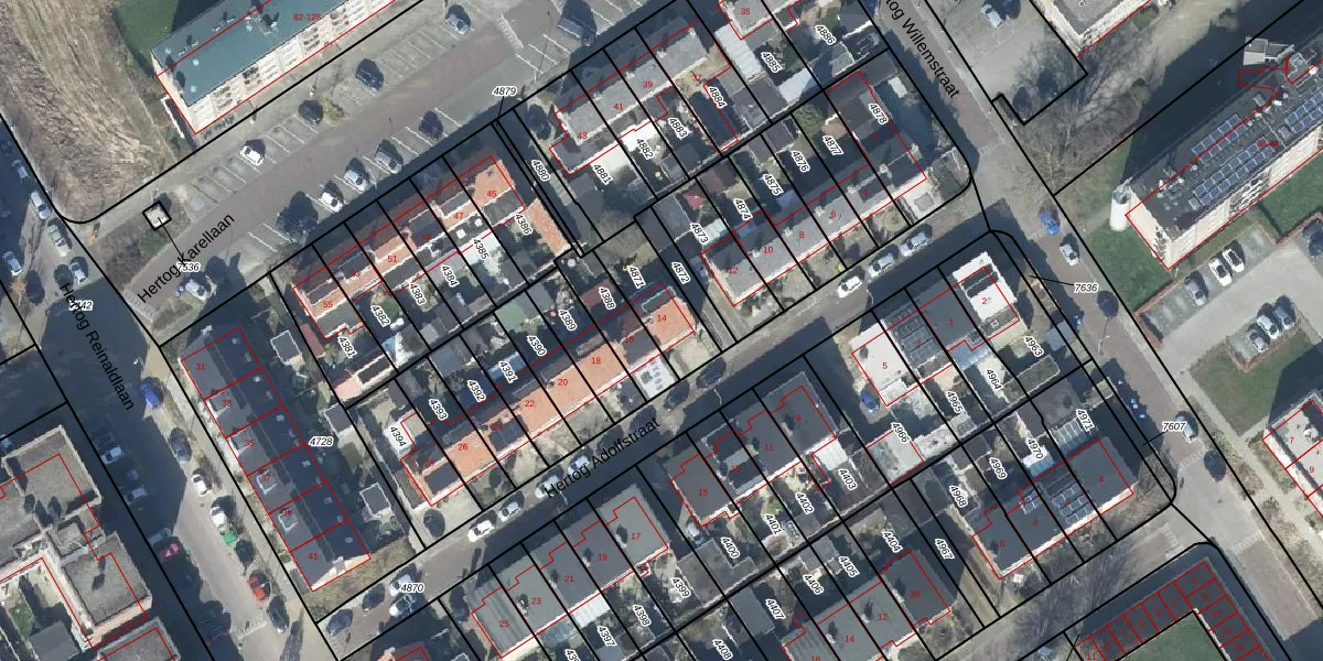 Hertog Adolfstraat 14 is gelegen op kadastraal perceel TIE00D4871. Deze kadastrale aanduiding is uniek en wordt gebruikt door het Kadaster om eigendomsrechten en andere zakelijke rechten vast te leggen. Het perceel maakt onderdeel uit van de kadastrale gemeente Tiel.