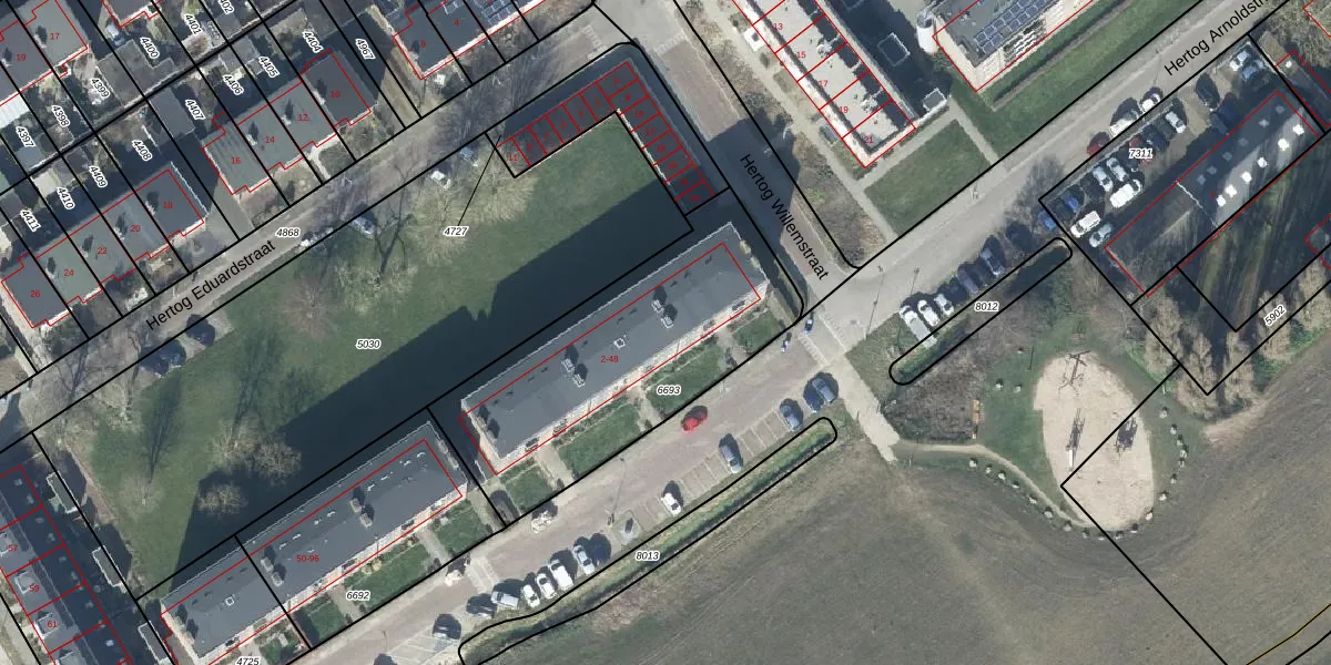Hertog Arnoldstraat 12 is gelegen op kadastraal perceel TIE00D6693. Deze kadastrale aanduiding is uniek en wordt gebruikt door het Kadaster om eigendomsrechten en andere zakelijke rechten vast te leggen. Het perceel maakt onderdeel uit van de kadastrale gemeente Tiel.