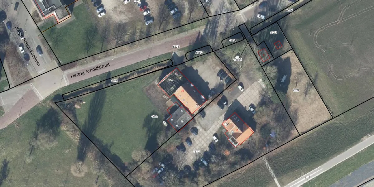 Het perceel waarop Hertog Arnoldstraat 3-a staat heeft een oppervlakte van 2940 m². Dit is een zeer groot perceel. De perceeloppervlakte wordt geregistreerd door het Kadaster. Gedetailleerde informatie over de maten van dit perceel kunt u vinden in het rapport Kadastrale kaart met maatvoering van Hertog Arnoldstraat 3-a.