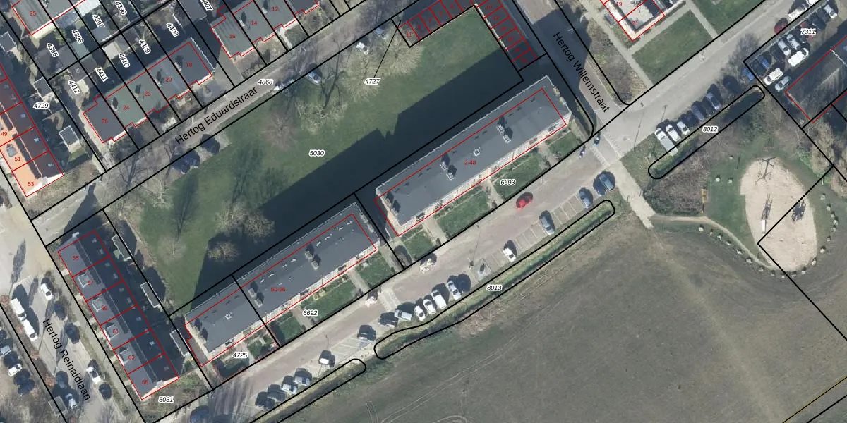 Hertog Arnoldstraat 34 is gelegen op kadastraal perceel TIE00D6693. Deze kadastrale aanduiding is uniek en wordt gebruikt door het Kadaster om eigendomsrechten en andere zakelijke rechten vast te leggen. Het perceel maakt onderdeel uit van de kadastrale gemeente Tiel.