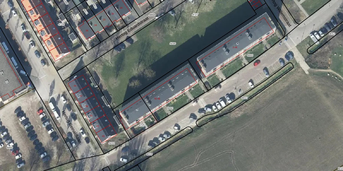 Het perceel waarop Hertog Arnoldstraat 62 staat heeft een oppervlakte van 738 m². Dit is een groot perceel. De perceeloppervlakte wordt geregistreerd door het Kadaster. Gedetailleerde informatie over de maten van dit perceel kunt u vinden in het rapport Kadastrale kaart met maatvoering van Hertog Arnoldstraat 62.