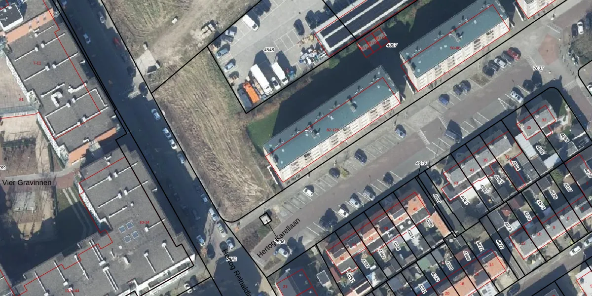 Hertog Karellaan 122 is gelegen op kadastraal perceel TIE00D4887. Deze kadastrale aanduiding is uniek en wordt gebruikt door het Kadaster om eigendomsrechten en andere zakelijke rechten vast te leggen. Het perceel maakt onderdeel uit van de kadastrale gemeente Tiel.