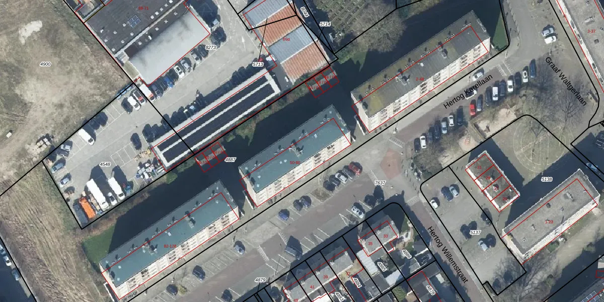 Het perceel waarop Hertog Karellaan 60 staat heeft een oppervlakte van 5790 m². Dit is een zeer groot perceel. De perceeloppervlakte wordt geregistreerd door het Kadaster. Gedetailleerde informatie over de maten van dit perceel kunt u vinden in het rapport Kadastrale kaart met maatvoering van Hertog Karellaan 60.